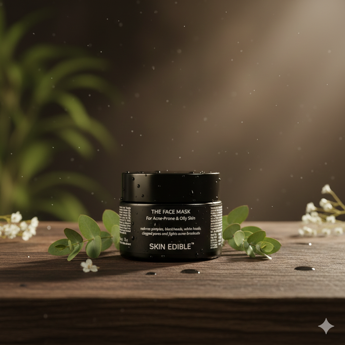 The Face Mask is a potent, plant- and clay-based formula designed to detoxify, purify, and clarify acne-prone skin. A blend of Bentonite, Rhassoul, and Multani Mitti clays absorbs excess oil, draws out impurities, and tightens pores. Activated Charcoal and Dead Sea Salt work to eliminate toxins and deep-seated dirt, while soothing Chamomile, Lavender, Rose, Marigold, and Peppermint hydrosols calm irritation and refresh the complexion.